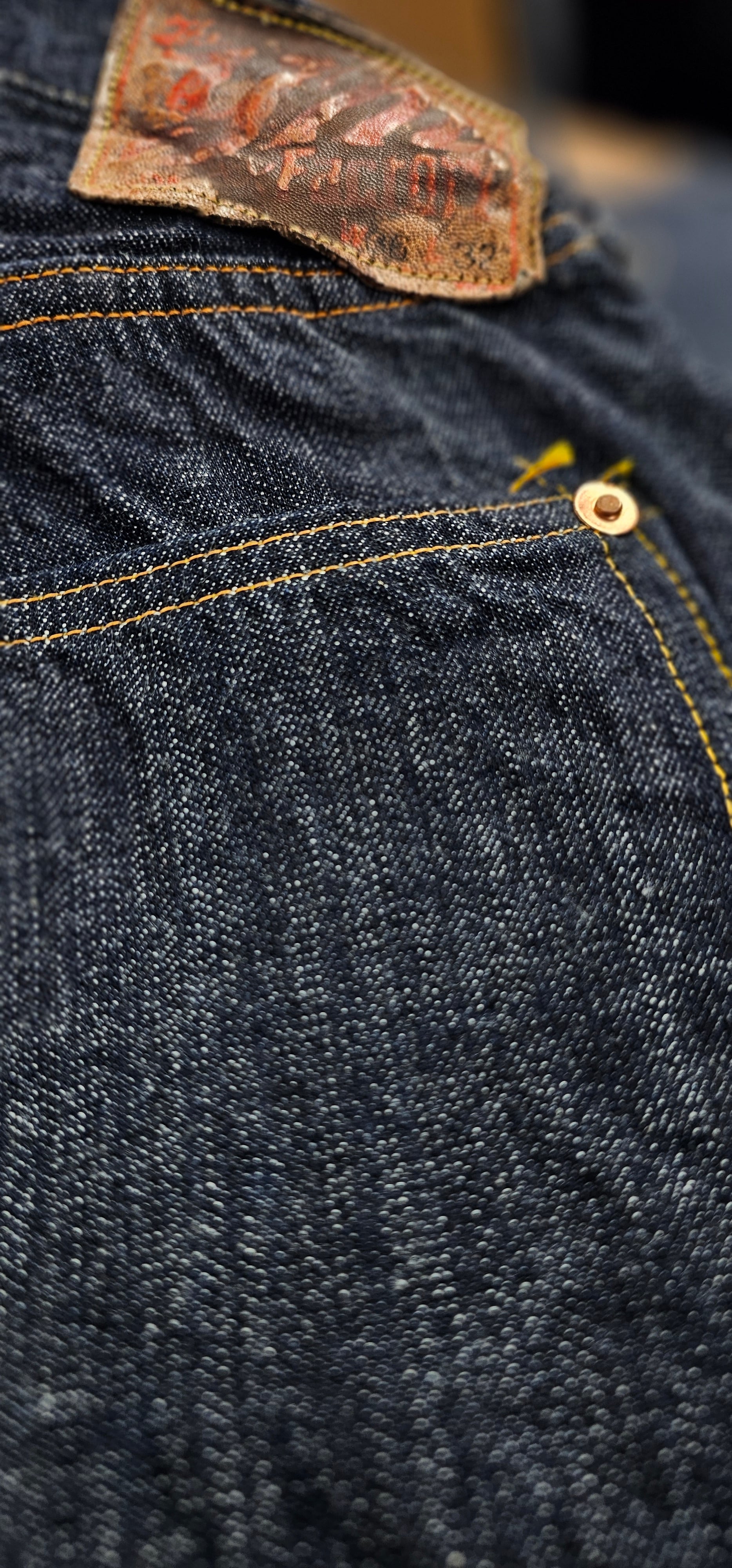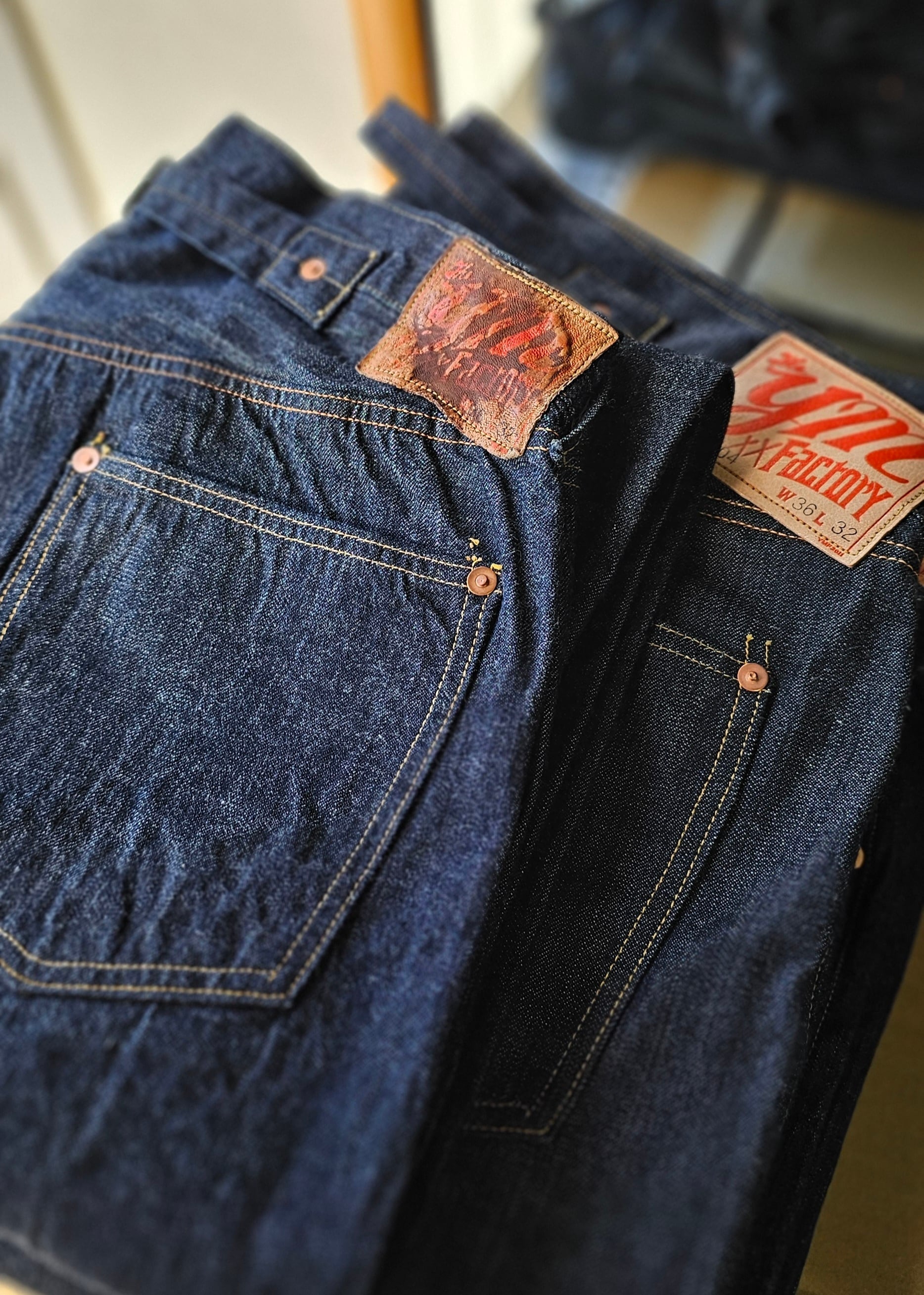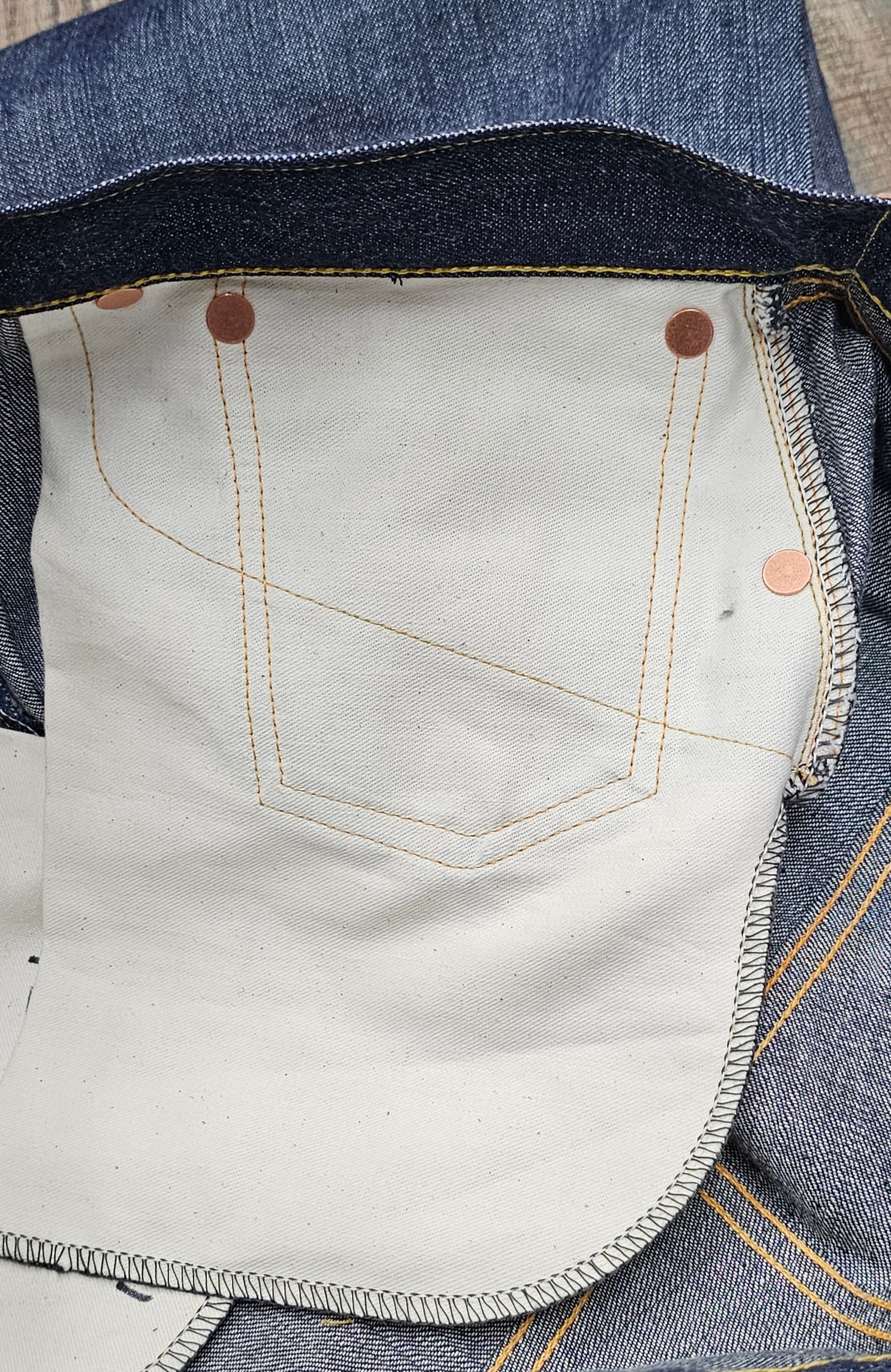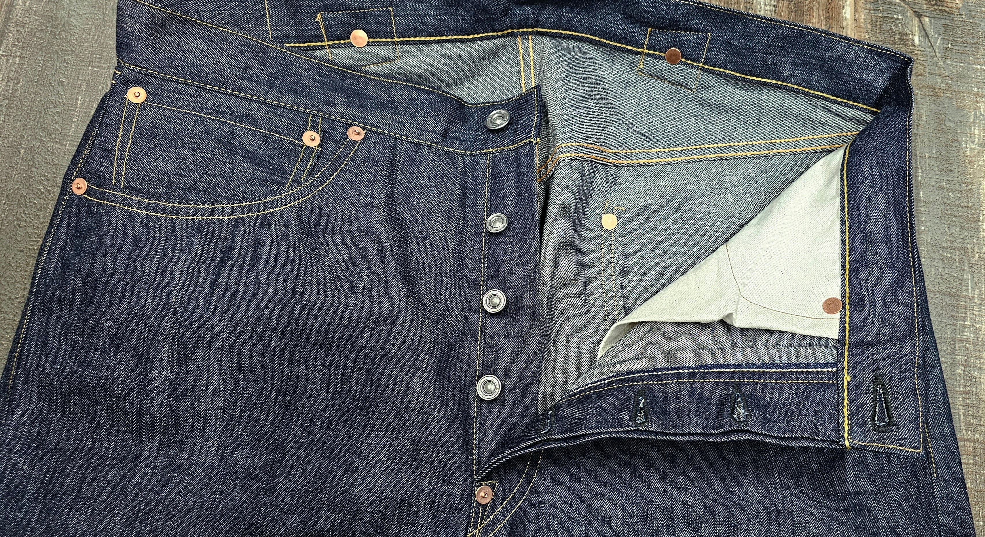 所有する1910年代のヴィンテージデニムの構造を基に、型を起こしています。