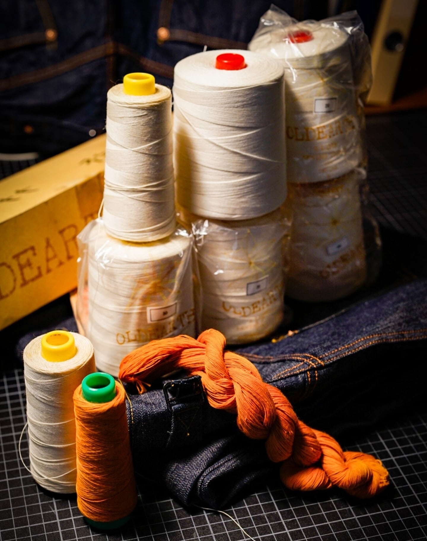 生地の色落ちに合わせ、糸も自然に退色していく設計です。